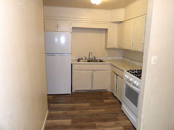 2 bedroom 1 bathroom duplex. Kitchen comes with a refrigerator and oven/stove. This property also has washer and dryer hookups. This property shares its garage with the other side. Water stays in the owners name with a $100 water utility fee.