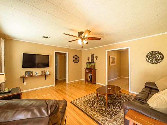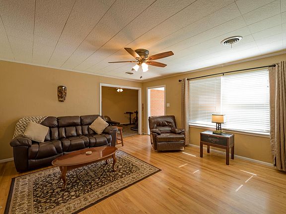 Well cared for home in Olsen on a quiet street. 3 Bedrooms, 2 Bathrooms, 2 Living areas. Large sunroom (not included in sf) with French doors that open to a covered patio, tiled porch and beautiful backyard. BONUS, large finished interior storm shelter and oversized garage with work area.