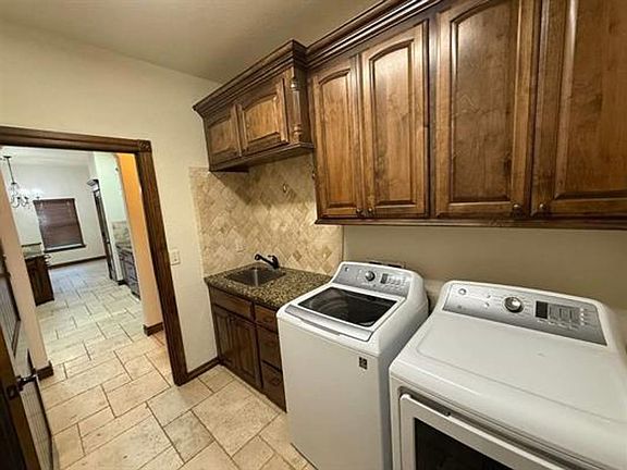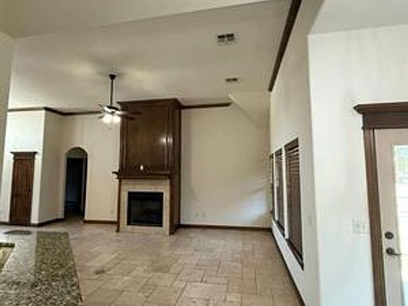 This uniquely finished home is located in the lovely lakeside Oak Pointe Addition has been freshly painted, extra tall ceilings, an open living area with a Gas Insert fireplace, a space that may be used for either a separate dining or office area. Begin your day in the Gourmet kitchen with Venetian finished vent hood and have a Cuppa in your cozy nook or at the breakfast bar. Enjoy granite countertops throughout, travertine and laminate flooring in main living areas. Workshop has electricity and cabinets. All Roof shingles replaced 07/2024.