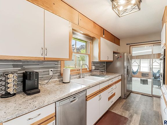 What's not to love!? Whether it's the updated electrical panel or the full basement remodel, which includes a new egress window, framing, insulation, drywall, paint, flooring, shower and fixtures, there are so many upgrades in this mid-century modern gem. This beautifully maintained home is nestled on a large corner lot in an established neighborhood. With 4 spacious bedrooms—including 3 on the same level—and 2 bathrooms, this home offers a layout that's as practical as it is inviting. Step into the bright, open living room, where large picture windows offer lots of natural light and highlight the home’s timeless character. The functional galley-style kitchen offers excellent workflow and storage, perfect for everything from quick meals to entertaining. The primary bedroom has a huge closet, while each additional bedroom provides comfort and flexibility. In the basement, you'll not only find an updated 200 amp electrical panel, but you'll also enjoy a completely remodeled basement, which includes a new egress window, new framing, insulation, drywall, paint, flooring, shower, and light fixtures. Outside, enjoy the benefits of a quiet neighborhood while being just minutes from shopping, dining, parks, entertainment, and downtown amenities. A two-stall garage adds convenience, and the expansive lot offers plenty of potential for enjoying the outdoors. Don’t miss this perfect blend of location, space, and classic mid-century charm!