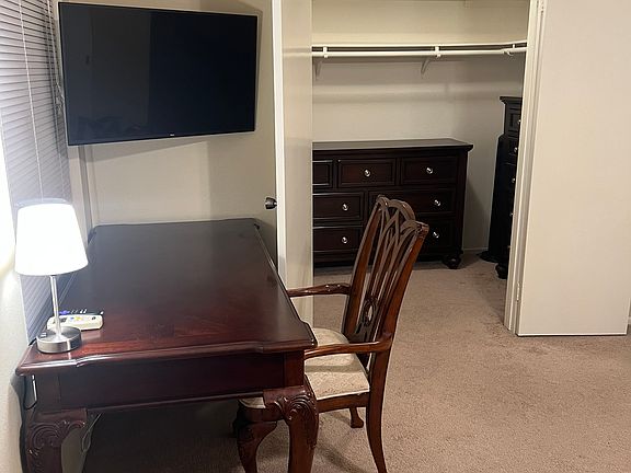 The main bedroom room is approximately 16x10 and also has a large walk-in closet 5x10. There is a desk and chair in the bedroom.
