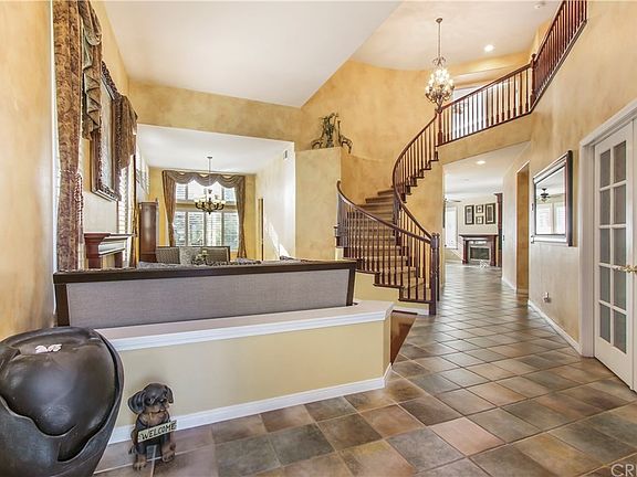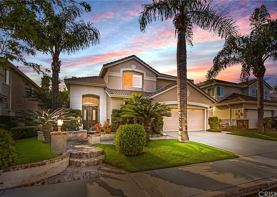 GRAB THIS QUICK!!! PEAK-A-BOO VIEW Stevenson Ranch Ryland Summit 2 story sparkling pool / spa home located on one of the most popular streets/cul-de-sac in the Tract. This MOST DESIRED floor plan has 5 (possible 6) bedrooms, 3 baths (2 upstairs & 1 downstairs), 3,032 sq ft living space, 7,208 sq ft lot. Grand entrance opens to a spiral staircase, gorgeous formal living w/ fireplace and dining room with high ceilings adorned with light from double paned windows. Downstairs office with high quality custom wood built-ins. PLUS a separate downstairs bedroom / separate den / bonus room with built-ins. Chef's kitchen includes cooks center island kitchen with granite counter tops, tons of cabinet space, double oven, blt-in refrigerator, and a breakfast area overlooking the family room with fireplace and built-in entertainment center. Relaxing master suite with nice balcony, large walk-in closet w/ professional organizer, private master bath with tub, separate shower & dual sinks. Three generously sized bedrooms have great closet space. Entertainers private backyard has a pool w/ two waterfall features & jacuzzi, gazebo, and a built-in BBQ. Additional Amenities: hardwood floors, designer porcelain tile floors, newer plantation shutters, custom wood banister, crown molding, wrought iron front gate, fountain, indoor laundry room & direct access 2 car garage. Great location near transportation, shopping, TOP RATED CA K-12 DISTINGUISHED SCHOOLS, and close to CAL ARTS & COC!!