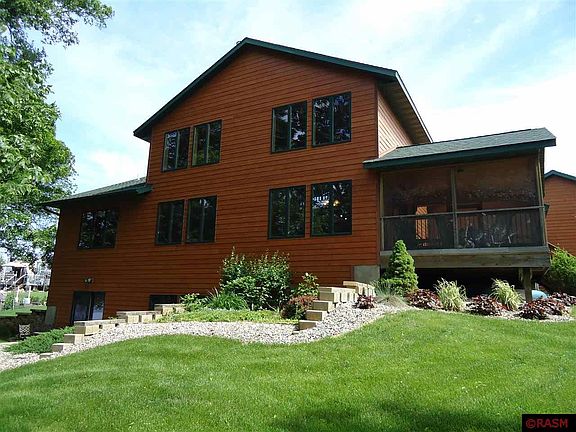 TIME TO MOVE TO THE LAKE? This 3-bedroom year-round lake house has a triple attached garage, cement board siding, heat pump heating system, wood burning stove in great room that has windows facing the lake from floor to ceiling! Main level laundry, screened porch off dining area, convenient kitchen with a center island, stainless steel appliances, walk-in pantry and a breakfast counter. Master bedroom on main level has his n hers walk-in closets, two baths on main level and one in lower level off family room. Family room has heated stamped concrete floors along with patio doors leading to the lake. The lot is gently sloped to the lake, has a small beach area and house is beautifully landscaped. Compliant septic.