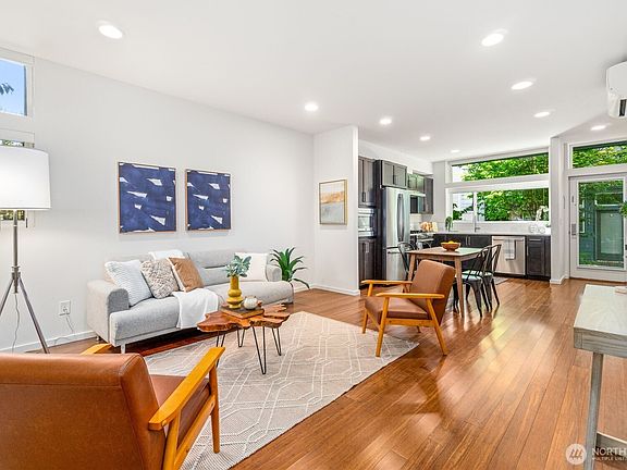 Experience stylish urban living in this thoughtfully designed townhouse featuring a stunning rooftop deck w/ sweeping views of the Seattle skyline, Mt. Rainier, & Elliott Bay. Main level offers open living & dining areas, plus a chef’s kitchen complete w/ SS appliances, stone countertops, & a gas stove. The second floor has two bedrooms & full bath, while the third floor is dedicated to the primary suite complete w/ an additional den space perfect for an office/nursery, a walk-in closet, & spa-inspired bath. Additional highlights include designer finishes throughout, hardwood floors, & energy-efficient mini splits. Prime Magnolia location close to highly rated schools, transit at your doorstep, Downtown, South Lake Union, & Elliott Bay.