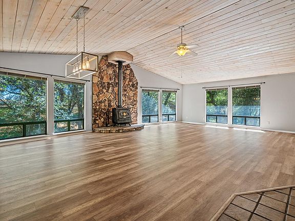 EXCELLENT LOCATION! VERY LOVELY, PRIVATE WOODED SETTING WITH NATURE SURROUNDING! This distinctive home features a wide open floorplan with natural wood tongue & groove vaulted ceilings. Three bedrooms, two baths, and a bonus room downstairs. Kitchen has been updated with new granite counters, subway tile backsplash, and wine refrigerator. Sellers have just installed new Lifeproof'' solid surface flooring in living room and dining room and new carpeting throughout. Tranquil views from every window and back deck. Both levels have outside access. Downstairs could work as accessory living quarters. Nicely situated on a one full acre with room for a shop or another garage. Close to downtown Placerville, Highway 50 commute, schools, and shopping.