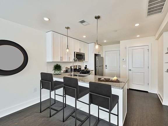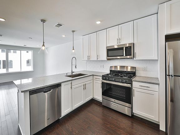 Enter your 2 bedroom, 2 bathroom apartment into your L shaped kitchen that opens into your living area. The kitchen is equipped with modern finishes, full size oven, stove, refrigerator, microwave, dish washer, garbage disposal, deep sink and soft close cabinetry. Off of the kitchen you will find a coat closet/pantry. Head upstairs where you will find the first oversized bedroom and bathroom as well as TWO storage closets. You will also find the washer and dryer on this floor. Continue upstairs to the primary bedroom with en-suite bathroom and TWO closets and a linen closet. Continue upstairs to your own private roof top deck! This apartment spans three floors and is perfect if you prefer the living floors and each bedroom to be on their own level for quiet enjoyment.