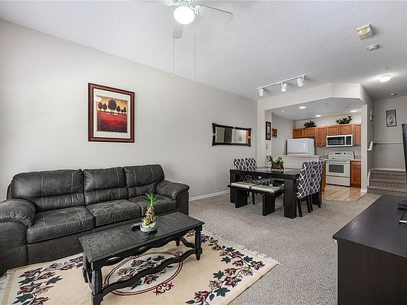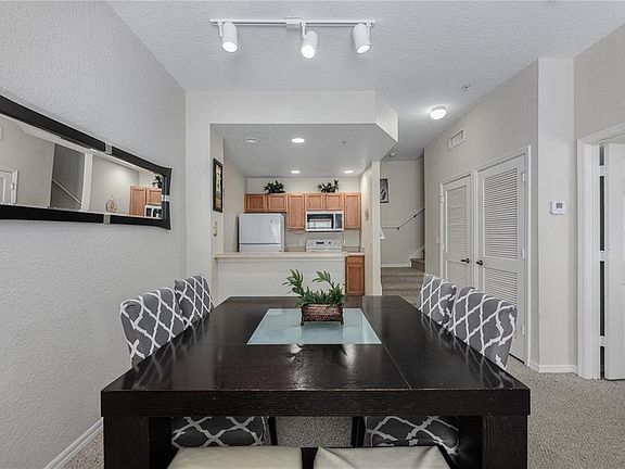 Beautiful Fully Furnished 2-Story Townhouse! Welcome to this beautiful two-story, fully furnished townhouse located in the desirable Villas at Seven Dwarfs Lane just 8 miles from Disney! This spacious home features an open floor plan with the primary bedroom conveniently located on the first floor, complete with an oversized jacuzzi tub in the master bath. The laundry closet with stackable washer and dryer is across from the kitchen, and both appliances are included. Upstairs, you'll find two additional large bedrooms and a full bathroom with a separate vanity area. Enjoy peace of mind with 24-hour security at the gated entrance and take advantage of the resort-style amenities including a clubhouse, fitness center, heated pool and spa, tiki bar, lighted tennis courts, basketball and volleyball courts, splash pad, playground, and fishing pond (catch-and-release only). Cable and internet are included in the rent.