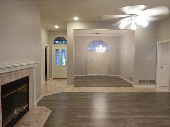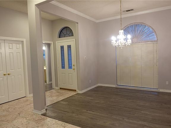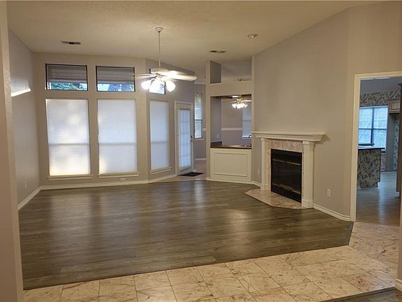 Light and Bright, interior neutral gray, spacious living and kitchen, hard surface flooring in both living rooms, formal dining or study and eat in kitchen. Carpet in the 3 split bedrooms only. Split master with huge bath features 12x7 closet, ample counter space with makeup vanity for her, jet tub & shower. Private treed park like yard with low maintenance garden beds, 12x13 wood deck, rose garden viewed from window seat in breakfast room, storage shed. Exemplary GCISD schools. Landlord will consider removing kitchen wallpaper. Home will be vacant May 11. $2100 rent for 2 yr lease