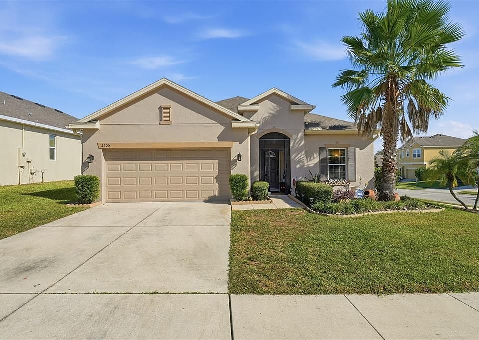 Your new home is designed in grand style for comfort and Florida living. Situated on a corner lot that only givies you neighbors on one side provides privacy. The 40x10 under roof rear patio with epoxy coated flooring is made for entertaining and offers a backyard oasis! Having 3 bedrooms, a den, and 2 bathrooms will give you plenty of room for guests, a home office, or play room for the little ones or fur babies. Your kitchen is beautifully designed with granite countertops, custom cabinetry, a 2025 refrigerator, and plenty of storage and room for multiple chefs. A comfortable open living space and generous sized rooms lends to the charm of this home. The home's exterior was freshly painted with high quality paint and a new irrigation installed in 2025 along with a 2024 Bosch HVAC system with ultraviolet light for pure clean air. You need to see this home and make it yours! Call today for your appointment!