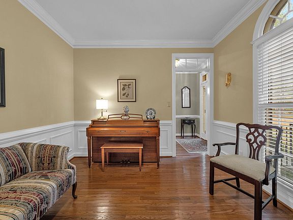 Step into a lifestyle of comfort and refinement in this charming residence offering a harmonious blend of modern functionality and timeless elegance, designed to cater to both peaceful living and stylish entertaining. The heart of this home is its thoughtfully designed kitchen, where stainless steel appliances and a center island invite culinary creativity. Imagine mornings spent sipping coffee in the breakfast area, with sunlight streaming through and easy access to your private deck and patio for al fresco moments. The formal dining room is perfect for hosting unforgettable gatherings, with wainscot and crown molding adding a touch of sophistication. Adjacent, the living room or home office provides a versatile space, complete with elegant transom doorways. Retreat to the primary suite, a sanctuary of relaxation with a walk-in closet and space for unwinding. Hardwood floors flow throughout most of the main level, enhancing the warmth and character of each room. A huge, unfinished attic offers endless possibilities for customization. Experience the joy of living in a home that embraces both charm and modernity. Convenient to I-540, New Publix shopping center and Buffaloe Road Athletic Park & Aquatic Center