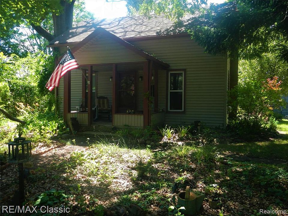 This cozy little country bungalow is waiting for the right handy man to fix it up. Solid home with newer roof and windows. Corner lot. Garage non insurable. Garden like yard with tons a treasures. Cherry tree and apple tree with lots of flowers. One bedroom on main floor with possible one to two upstairs, Wood burring fireplace. Michigan Basement. Water softener will be included. Great little fish pond complete with gold fish and frogs.
