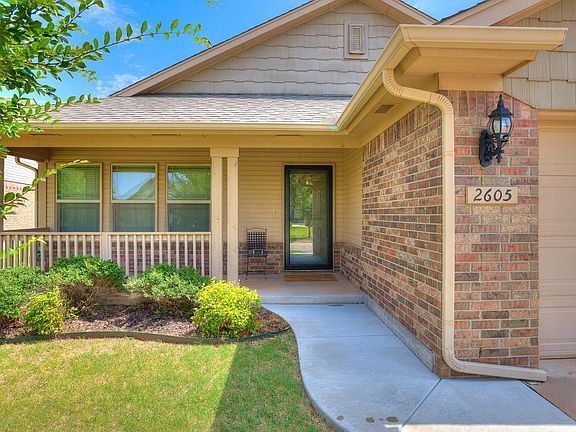 Welcome home to 2605 NW 186th St! This wonderful home is located in the highly sought after Valencia neighborhood. As you pull up to the house, you are greeted by a nice yard and adorable front porch. Once inside, the home opens up into a large living room with lots of natural light. The kitchen is open to the eat in with a nice sized breakfast bar. The bedrooms are split with the master on one side. The master is very spacious and roomy, with access to the master bathroom. The secondary bedrooms are on the other side and share a hall bath, perfect suite for kiddos! The backyard is wonderful with an extended stone patio and built in planters. Its also perfect for the person that wants easy access to walking trails, playground and all that Valencia has to offer.