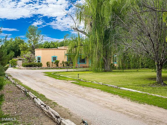 IN-GROUND POOL. HORSE PROPERTY. SOLAR. This is a 3 bedroom, 1.75 bathroom, 2491 Sq.Ft., 2.58-acre horse property located in Mesilla. Enter this home and find a light and bright foyer. To the left, you will find the family room featuring a fireplace and a dining area. Then find the kitchen featuring Kowalski cabinets, granite counter tops and some stainless steel appliances. Off of the kitchen, you'll find a laundry/mud room. This home features a split floor plan. The primary bedroom features patio access and the primary bathroom features a new shower stall. You will also find a large 26'x15' living room/study. The charming covered patio leads to the in-ground pool. The barn features 4 stalls, a tack room and extra storage. The detached 2-car garage features more storage and a possible art studio, workshop or office, not counted in square footage. This property features 20 solar panels which equates low to no electric bills.