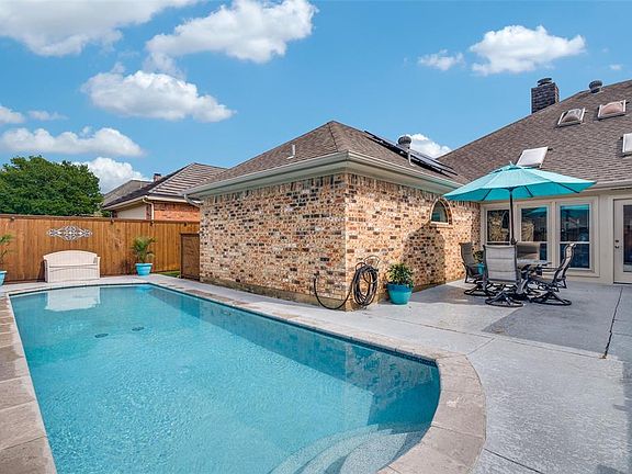 Welcome to 2605 Nighthawk Drive, a spacious and energy-efficient 3-bedroom, 3-bathroom home offering 2,491 square feet of comfortable living in one of Plano’s most established neighborhoods. This beautifully maintained property features a bright and open layout, upgraded triple pane insulated windows with multiple living spaces for your living and working from home lifestyle. The large living room has beautiful transom windows, coffered beam ceiling, elegant brick gas fireplace, built-in cabinetry bookshelf and is perfect for relaxing evenings at home. The heart of the home is a well-appointed kitchen, with window seat, ceiling fan, planning desk, bookshelf, plentiful cabinet space and granite counters for preparing meals with easy flow into the dining and living areas. The generous primary suite has patio doors, ensuite bath with a recent tile and glass shower update, two large walk-in closets, vaulted ceiling and skylight. A sunlit family room can be used as a library, den or multiple offices, has a skylight and a wall of updated windows and door. A bonus room atrium could be used for dining, crafts, or hobbies and is adjacent to the patio and the pool area. The in-ground play pool is perfect for exercise laps, outdoor play or relaxation, and has a privacy fence. With its recent resurfacing and updated pool equipment it is primed to be your summer escape! The backyard also offers a beautifully landscaped, grass side yard for gardening or pets. Enjoy lower utility bills and eco-friendly living thanks to a solar electric systema valuable upgrade for both the environment and your wallet. The solar system is owned, will be paid at closing and will convey. Conveniently located near top-rated schools, Frank Beverly Park, shopping, dining, and major highways, this move-in-ready home blends comfort, sustainability, and style.