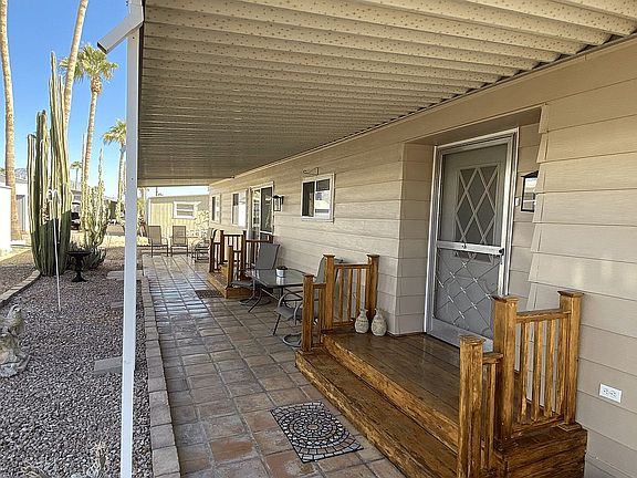 Perfect home retreat or great as a second home in sunny Arizona. This double wide 2 bedroom and 2 bathroom manufactured home is on a corner lot in The Raindance Resort, a premier 55+ gated community. Move in ready with all furnishings included. It has an inviting Spanish Tile front patio, perfect for your morning coffee. The carport with south facing side entrance allows you to also enjoy entertaining in the afternoon. Inside you’ll find a large open living/dining room, perfect for gathering family and friends. The eat-in kitchen is mid-century southwestern style with new stainless steel oven, microwave and stove top. The kitchen peninsula is perfect for casual dining. A bright sitting/TV area is available adjacent to the kitchen. Cozy well-sized bedrooms offer private and comfortable retreats with plenty of storage space. Outdoors, you'll find sheds for additional storage and breathtaking view of the Superstion Mountains. The Raindance Resort has a gym, pool, pickleball courts, community resources and offers fun community activities. This welcoming community and home value won't disappoint!