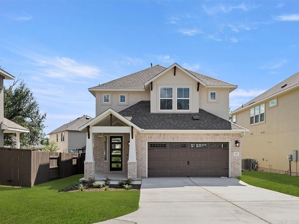 MLS# 3107250 - Built by Brohn Homes - Ready Now! ~ Introducing Unit 87, located in the luxurious Clear Creek Community. This two-story new home layout offers plenty of space for storage and activities with an upstairs loft area and a rear covered patio with a gas drop for BBQing. The home features high-end finishes like 8-foot doors on the first floor, Silestone countertops throughout the house, and stainless steel appliances, including built-in oven and refrigerator. The kitchen has a bright interior with grey cabinets with bronze hardware and 42-inch upper cabinets, double trash can pull-out, pendant lighting, and center island. The primary suite features a box window, walk-in closet, walk-in shower, separate water closet, and dual vanity. Enjoy other features including utility room on the second floor with bedrooms, front gutters, garage door opener, blinds throughout, and more! Clear Creek Community is a prime destination in Round Rock. Enjoy the community's premium amenities, such as the parks and trails, or activities such as shopping at Round Rock Premium Outlets or local restaurants in downtown Round Rock. Plus, an excellent school district. And because it’s an energIQ home built by Brohn, you’re getting more home, more quality, and more value—all without compromise.