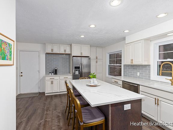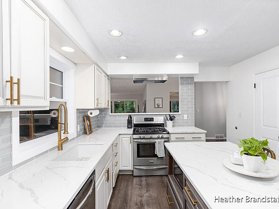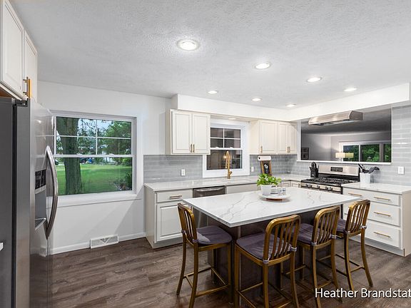 The magnificent kitchen is perfect for entertaining and updates include: quartz countertops, new appliances, new cabinets, hardware, kohler faucet, spacious island and subway tile backsplash. The serene primary with full en suite bathroom featuring a waterfall tile shower with 6 jets, whirlpool air-jet freestanding tub, and walk in closet. Beautiful updates throughout include new flooring, newer roof, new windows, sliding doors, modern lighting, fresh paint, bathroom renovations and much more. The lower level features a full bathroom, family room, 4th bedroom and loads of storage. The wooded backyard oasis features, large deck, fire-pit and patio. Conveniently located near Knapps Corner, Robinette's Apple Orchard and 96. Come visit this fantastic home today. Please see attached updates list.