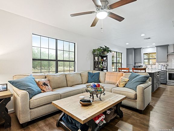 Welcome to this one-of-a-kind property in Poteet, Texas - the Strawberry Capital of the World! Just 35 minutes south of downtown San Antonio, this ranch offers the perfect blend of country living and city convenience. The property features a beautifully remodeled 1,068 SF ranch-style home, thoughtfully updated with modern finishes while maintaining its warm, inviting charm. Complementing the home is a newly constructed 3,200 SF climate-controlled barn with three roll-up doors. Whether you're looking for a workshop, equipment storage, an event space, or something entirely your own, this barn is a tremendous asset with endless potential. The land itself is a true South Texas treasure, with a mix of open pasture up front and majestic century oaks scattered throughout the middle and back. Three phase power in place and a private Carrizo Aquifer water well provides exceptional quality water, highly sought after in this region. For agricultural use, the front pasture includes two pivots for irrigation, and the property boasts two tanks, adding both functionality and beauty. Steeped in history and tradition, Poteet is well-known for its annual Strawberry Festival, celebrating the town's deep agricultural roots. Owning land here means being part of a proud South Texas community where farming, ranching, and small-town values are woven into everyday life. Whether you're searching for a working ranch, a weekend retreat, or a conveniently located homestead, this property checks every box with its thoughtful improvements, rich natural beauty, and unbeatable location.