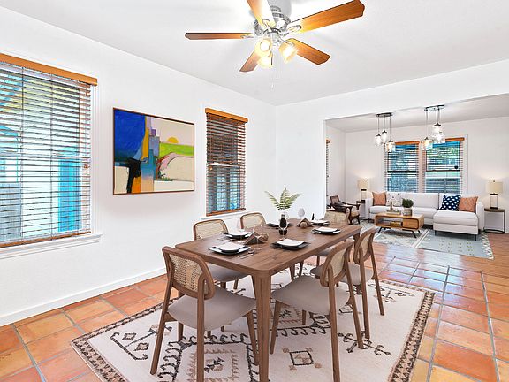 Located on a deep, fully fenced .176-acre lot, this home includes a 1-car garage and ample room for future expansion. The updated interior features an open-concept living, dining, and kitchen area with a bright and spacious feel. With Saltillo tile, hardwood flooring, and vibrant Mexican tiles throughout, the home creates a warm and inviting atmosphere. The kitchen, filled with natural light from vaulted ceilings, includes stainless steel appliances and granite countertops.