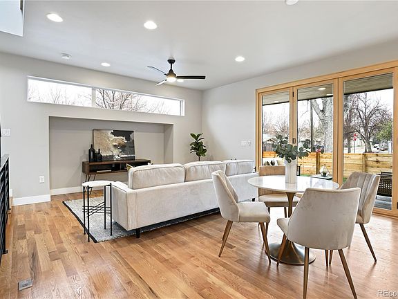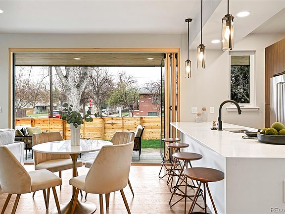 These Sunnyside residences have been impeccably crafted by Davis Urban Architects to capture the coveted Denver lifestyle. Mixed media exteriors create contemporary curb appeal — a motif that flows inward to radiant open-concept floorplans. Anchored by a peninsula counter with seating, the kitchens boast sleek cabinetry and gleaming stainless steel appliances. Seamless dining and living spaces offer generous room for home entertaining complemented by showstopping bi-folding glass walls that open to private yard. These oases are fully fenced with an abundance sunshine, granting owners the flexibility to create personal outdoor havens. Floor-to-ceiling glass and skylights grace each home with cascades of natural light. The three upper-level bedrooms include a sizable primary suite which is naturally lit by a vast picture window. The en-suite primary bathrooms emit a rejuvenating aura with dual vanities and generous walk-in closets. Crowning the south-facing residence is a roof deck that expands the ability to entertain. A lower-level retreat offers an additional bedroom and bathroom plus a flexible recreation area.