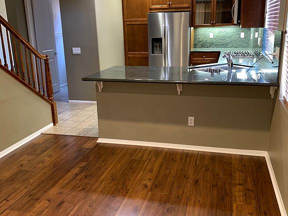 This single-family house built in 2006 offers 1,504 sq. ft. of living space with 3 bedrooms (Master: 14 ft. by 16 ft.), 2 full bathrooms, and 1 half bathroom with an attached two-car garage. It features 9-foot ceilings throughout and is situated in a gated community. The house includes stainless steel appliances such as a refrigerator, dishwasher, and microwave. There is also a washer and dryer with laundry cabinets, as well as a 50-gallon gas water heater. The property is located within 5 minutes of the freeway and within 2 miles of Costco, Target, Home Depot, Lowe's, Walmart, Sam's Club, and LA Fitness. The master bedroom has a walk-in closet. The dining room, living room, corridors, stairs, and bedrooms have wood flooring, while the bathrooms have ceramic tiles. The kitchen features granite countertops and backsplash with high-end cabinets and a 4-burner gas range. All bedrooms are equipped with ceiling fans and lights, with the master bedroom fan being remote-controlled. The living room includes a decorative fireplace, and the house has central A/C and a heat pump system. The walls are insulated. The two-car garage has an automated garage door motor with battery backup. Community amenities include a swimming pool and a playground for children. Renter is responsible for all utilities. Pets and smokers are not allowed. Available for viewing 6/14/2025 Available for rent 6/14/2025 (renewable annually) Application Fee: $60 (non-refundable)