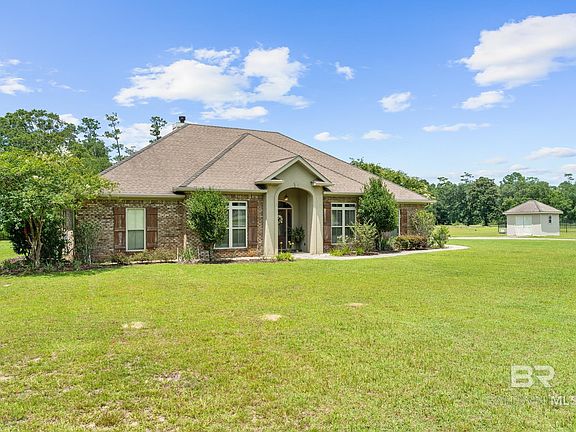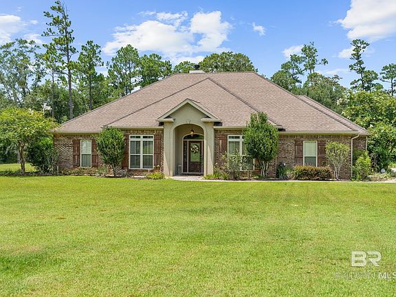 Experience serene country living in Elberta, AL. This sought-after low-density neighborhood provides seclusion and privacy while still being conveniently close to town. Situated on 3.46 acres, this custom-built home features expansive outdoor areas and stunning natural surroundings. It’s a true gem boasting over 3,400 sq ft of living space and numerous upgrades. Both HVAC units were replaced in 2021 and 2022, and a new water heater was installed in 2022. The home showcases soaring ceilings with crown molding, beautiful wood floors, and a woodburning fireplace. The kitchen is equipped with granite countertops, subway tile backsplash, custom wood vent hood, stainless appliances, and a step-up bar for seating. There is also a breakfast area adjacent to the kitchen providing more space for everyday dining. Additionally, there are two flex spaces at the front of the home, offering endless possibilities: use them as a formal dining room, home office, sitting area, or hobby room. Both rooms feature glass french doors, adding to their charm. The main level master suite is tucked away on its own side of the home ensuring complete privacy. The master bath features a claw foot soaking tub, custom tiled shower, and a spacious walk-in closet. Also on the main level are 3 additional bedrooms, a full bathroom, and a half bath. Upstairs you will find a separate living area complete with a bedroom, full bathroom, and kitchenette equipped with a mini fridge and sink. The perfect space for guests or family members! When you’re not enjoying the comforts inside the home, you’re sure to be on the screened back porch taking in the peaceful setting. The owners have also added a large deck off the screened porch, where you can grill and entertain. Other upgrades include gutters, an irrigation system, an oversized side entry garage, new water pump for the well, and a generator transfer switch. Come discover the unique charm of 26053 Chatelaine Rd and see what sets it apart! Buyer to verify a