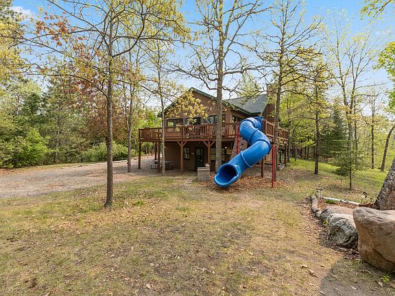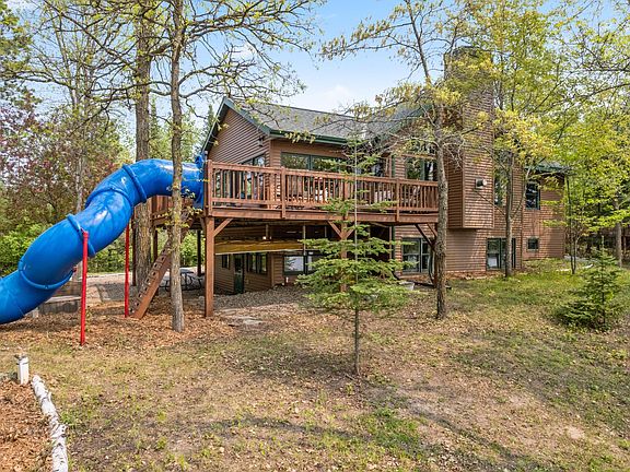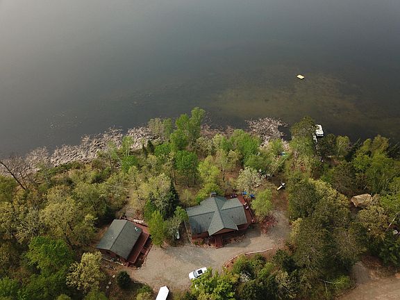 With nearly 1500 ft of private frontage on Island Lake, enjoy this 5Bd 2Ba main house coupled with a 2bd 2ba guest cabin. Both cabins have bright and inviting eat-in kitchens with vaulted ceilings, built-in bunk beds, new LVP floors, huge rec. rooms, and expansive outdoor decks and patios. The beauty of this property abounds with nature, wildlife, trails, whispering pines, and a gentle elevation to the lake. Sit and relax to the crackling of the fire listening to the echoes of friends and family making memories or take in the serenity with your toes nestled in the warm beach sand. If this wasn't already enough, you can also take advantage of all the area has to offer including, breweries and wineries, small town shops, Heartland Bike Trails, and ATV trails. Also, NW corner of property abuts over 1000 acres of county land! There is a shortage of properties that check this many boxes so don't live in regret and buy this one NOW!