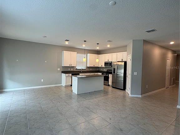 Looking for a family to enjoy this spacious 4 bed 2 bath home with a fully fenced yard. Enter through the spacious foyer and wander down the long hallway into the open plan, living/dining/kitchen area. Large island with room for stools. Stainless steel appliances, quartz countertops and tile floors. Several windows allow for lots of natural light. Sliding doors lead out to the covered patio and fully fenced yard. Split bedroom plan - the primary bedroom is at the back of the house and has vinyl flooring. The primary bathroom has two sinks, quartz countertops, a walk-in shower and a walk-in closet,. At the front of the house there are two further bedrooms and the second bathroom which has a tub/shower combo and quartz countertops . Across the hallway is the fourth bedroom along with the laundry room. There is a covered back porch and the yard is fully fenced. There is also a covered front porch . The community is conveniently located in South Leesburg for easy access to the Turnpike and other amenities. Publix less than 5 mins drive. The community has a children's playground and a dog park