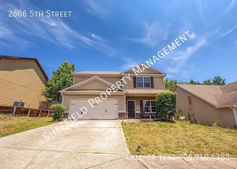 Welcome to 2606 5th Street, Phenix City, AL 36869 a beautiful 2-story home nestled in a serene neighborhood close to Southside Park. This spacious 4-bedroom, 2.5-bathroom offers a host of modern amenities for comfortable living. As you step inside, you'll notice the elegant dark wood floors that grace the kitchen and sitting area downstairs, complemented by nice blinds adorning all windows throughout the house. The kitchen boasts granite countertops, stainless steel appliances, a beautiful tile backsplash and opens seamlessly into the family room featuring a cozy electric fireplace, perfect for gatherings and relaxation. A convenient half bath completes the main level, ideal for guests. Upstairs, you'll find all four spacious bedrooms, each equipped with ample closet space for storage convenience. The master bedroom impresses with a large walk-in closet and an ensuite bathroom featuring a shower, a large bathtub for soaking, and a double vanity. Adjacent to the bedrooms is a spacious laundry room, making chores a breeze with its practical layout and easy access. Outside, a delightful covered patio in the front offers a serene spot to unwind on pleasant evenings, enhancing your outdoor living experience. This home also features a double garage and a privacy fenced backyard, providing security and ample space for outdoor activities and entertainment. Located just steps away from Southside Park, residents can enjoy a variety of recreational amenities including baseball diamonds, a basketball court, tennis court, a large playground, picnic areas, and a refreshing water feature area; a perfect retreat for families and outdoor enthusiasts alike. Don't miss the opportunity to make 2606 5th Street your new home, where comfort, convenience, and community come together seamlessly. Contact us today to schedule a viewing and envision yourself living in this inviting space.
