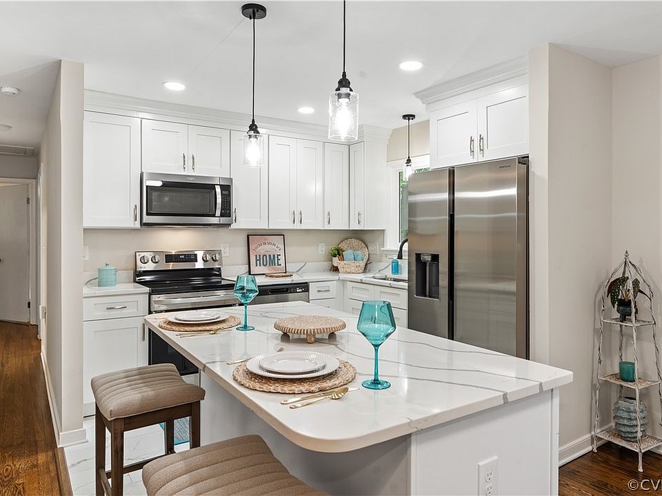 - Description: NEW, white cabinets, quartz, stainless appliances,