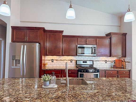 Well-maintained 3 bedroom, 2 bathroom home offering 1912 square feet of comfortable living space in a convenient Alamosa location. The open interior layout provides a functional flow between the living, dining, and kitchen areas. The kitchen includes granite countertops and ample cabinet space. The primary suite features a walk-in closet, double sinks, a walk-in shower, and additional built-in storage. The secondary bedrooms are well-sized for guests, family, or office use. Central air and forced air heat provide year-round comfort. Outside, the property offers a large fenced backyard with room for outdoor use and future landscaping. Additional features include solar panels, paved RV parking, and an attached garage. A 4.5 percent assumable VA mortgage is available for qualified buyers.