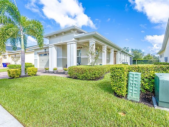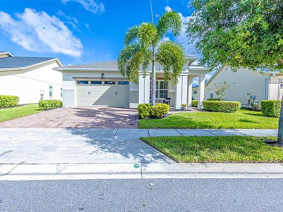Welcome to Your Paradise at Twin Lakes, a Del Webb Community! This resort-style community for those 55 and better awaits your arrival. This amazing Marco model is one of the finest on a 70-foot lot, largest lot offered in the community. You won't have to wait until December 2026 for a new build on a 70-foot lot! This home offers a total of three bedrooms, two of which are primary suites, three full bathrooms, an office or flex area with an expansive covered and screened outdoor living space with a landing paver pad right outside your screen door, as well as a widened paver driveway for easy parking. This well-appointed home features an open floor plan, high ceilings, luxurious lighting, and a large open kitchen with a massive Island, with high end quartz countertops throughout, and a large pantry. The kitchen, a chef's dream, includes upgraded white cabinets with crown molding, tons of windows that bring in the natural light, and beautiful plantation shutters throughout. It is equipped with a gas cooktop in this upgraded Bistro Kitchen with a newer refrigerator! The 1st primary suite boasts a large spacious place to relax and rest and sitting area to read, a large shower with newer upgraded frameless enclosure, and a large walk-in closet. Easy access to a spacious laundry room with a utility sink and ample cabinet and countertop space. Two guest rooms, one with an ensuite bathroom and a second guest bath are located away from the primary suite in this split plan, eight-foot doors are featured throughout. The home also includes a tankless gas water heater, a whole house Generac system, where you will have the peace of mind that you will never be without power in a storm, a water softener system, and a new high efficiency AC system. The very low community fees also cover lawn care, shrub care, mulch, sod, and irrigation. Amenities include a resort-style pool with beach entry and a separate hot tub, an Olympic-size lap pool, a grill house with covered seating, a 20,000-square-foot clubhouse with a fitness center, meeting rooms, a coffee bar, water stations, a craft room, a professional chef's kitchen, pool tables, ping pong, tennis courts, a putting green, walking trails, pickleball, fishing, and pontoon and Jon boats for resident use. A gathering house offers additional areas for socializing, with pool tables, ping pong, poker tables, and indoor and outdoor kitchens and bathrooms. The HOA fee is a low $358 monthly for all these amenities. The home is conveniently located near Lake Nona's Medical City, including the Veterans Hospital, theme parks, and Orlando International Airport (a 30-minute drive). The beaches and rocket launch in Brevard County are within 45 minutes. Schedule your private tour today.