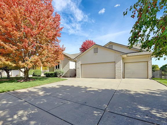Walk into this spacious ranch home and see the tranquil views this home has to offer; sitting on a lake lot in the Maize school district. The floor plan accommodates a roomy formal living room with a double sided fireplace; on the other side of the fireplace the heart of the home lies with abundant cabinetry complete with a central island topped with a granite countertop kitchen. The master suite indulges with double sinks, a large jacuzzi tub, and a generous walk-in closet, while main floor laundry adds practicality to daily life. With a three-car garage completing the package this home combines functionality, and serenity.