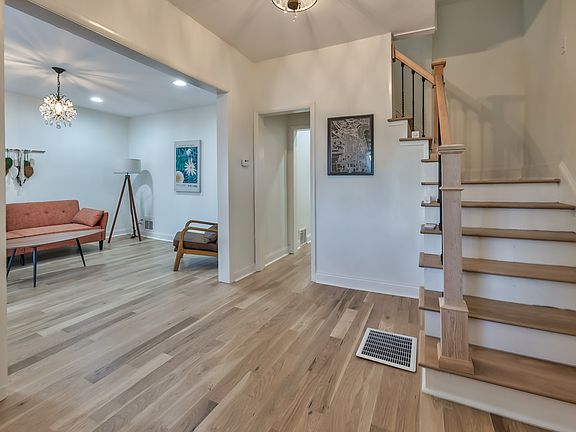 Stepping inside feels simply happy, bright, welcoming spaces with brand new natural white oak floors that flow throughout, complemented by a striking white oak staircase. The classic layout features a versatile first-floor bedroom that readily serves as a dining room, echoing how these historic homes were originally lived in.