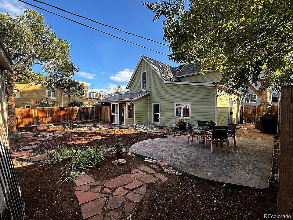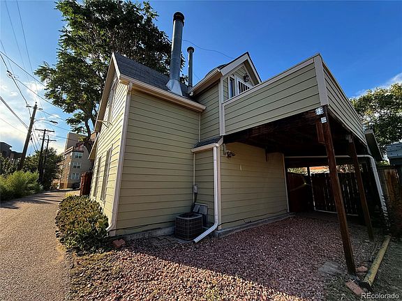 Here is a chance to own a little piece of old town Highlands. Located in the only historically-protected block in Jefferson Park, the core of this hidden gem was built in 1886 and was home to workers of the Zang Brewing Company. It has survived Denver's growth for well over a hundred years, including the relocation of River Drive. Now with all its modern updates, the house sits tucked in a private one-way alley (the original River Drive) making it the perfect little hide-away in the city. The carport area has a cedar shed and can hold one, maybe two tandem cars (backed-in) and the city provides on-street permits for River Drive. Enter through one of the three gates to your fully fenced-in yard - the right size for raised garden beds, pets or just enjoying the view from the patio. The yard has an 8x10 ft. shed for storing tools and seasonal items. Step into a small foyer for storing your daily stuff (ski/snowboard racks are nearby in the cellar area). The living room (and above it) is the original 1886 structure with wood-burning fireplace. The space is surprisingly flexible. Put focus on the fireplace, optimize for TV watching on one of the two walls, or make a dining area or bar just off the pantry. The kitchen has an extra dining space that's been used as a cozy family/TV room too. From here, you're steps away from the grill area and patio. Walk up the original stairs and enter into two, open (yet still conforming) bedrooms, full bathroom, and laundry area. This space is perfect for a single person or couple! With original wood floors, six windows and six skylights, you'll feel like you're floating in a tree house. Step out onto the deck and enjoy what's left of the city views. Technically, you can see the Cash Register Building from the bathtub, but that's a stretch. All the same, relax and enjoy some elevated space at your little hidden home in the city. Or if you live primarily outside of Colorado, make this your perfectly-placed Denver pier de terre.