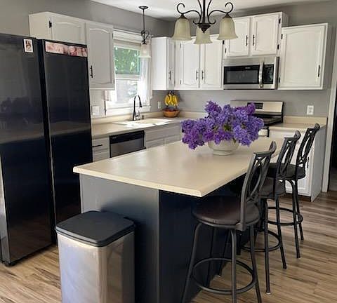 Just outside the city limits, with natural gas plus your own well and septic. Don't miss this awesome 3 BR, 2 BA , 2 Car Attached Garage, w/full basement. This ranch home has many updates which include new flooring, siding, windows, and gutters. There's a large Living room w/a brick fireplace for cozy evenings, lovely kitchen with an island/bar and 3 amazing pantries for overflow storage, dining area and all appliances to stay. Beautiful new patio door off the dining room/kitchen area leads to the relaxing deck, overlooking the peaceful back yard filled with wildlife that will entertain you for hours. The full basement has a brand new high efficiency furnace, new hot water heater, and new owned culligan water softener, a workshop for the handy repair person, extra room, storage and more.