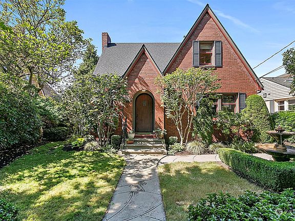 A tranquil fountain welcomes you to this wonderful Tudor in sought-after Magnolia. Inviting entry way w/ original leaded windows leads to a coved ceiling living rm w/ gas fireplace. Convenient main level bed & powder rm. Westerly facing dining rm is light filled w/ built-in corner shelves. All appliances recently replaced in this open kitchen w/ granite countertops & sun drenched eating nook. Step out on the back deck & soak in sunset territorial/mountain views overlooking the backyard & patio. Upper level beds offer vaulted ceilings w/ primary offering a private balcony w/ mountain & Sound views. Upper bath boasts separate shower & jacuzzi tub. Finished basement rec rm w/ high ceilings, 4th bed/office & large laundry rm. Welcome Home!