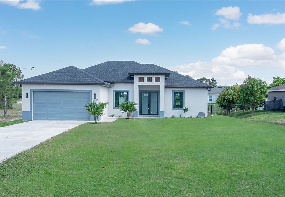 Welcome to this beautiful NEW CONSTRUCTION!!This house features 3 bedrooms, a den, 2.5 bathrooms, 2 car Garage and a Summer Kitchen on a quarter acre lot located in the highly desirable SW area of Lehigh. Upgrades includes Calacatta Rocky Quartz countertop in the kitchen and Quartz in the bathrooms, Tray Ceiling in living room and master bedroom; modern style fan and light fixtures throughout entire home. LED light and crown molding on kitchen cabinets; Stainless Steel appliances package, top of the line vinyl flooring throughout the house, tiled bathrooms, LED bathrooms mirrors, frameless glass doors in showers, Shaker Panel style doors, decorative case molding around windows, exterior lights around the house. House is also equipped with impact-rated windows and doors. Beautiful landscaping with sprinkler system and a good-size Summer kitchen for a perfect family BBQ! Lanai area comes with a convenient exterior half bathroom for your guests or for future pool use. Come see this beautiful home ready to move in before is gone! Agent, please see confidential remarks.