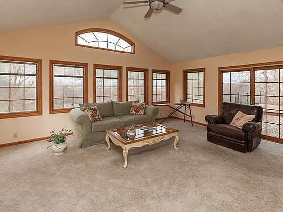 Talk about a dream come true! Spacious RANCH home with 4500+ sq feet of finish set on 23 acres with a 1-acre stocked POND, beautiful setting with trees and on HARD-SURFACED ROAD. An easy drive just 12 miles west from the Cumming Exit at I 35. This property offers a 1900s vintage barn, as well as a 36X72 pole barn, 4 car attached garage and a sportsmans dream with deer, turkey, fishing, motocross trails, camp fire area and manicured trails. The home has been kept immaculate and features a large kitchen with huge granite center island, quality cabinetry, farmhouse sink, spacious family room with stone fireplace and dining room, wonderful deck, 3 large bedrooms on the main level and 2 non-conforming bedrooms down. Laundry/mud rm off the kitchen with direct access to 3-car garage. There is a 2nd family rm, exercise rm, large utility rm and access to the 4th garage (heated) from the lower level. The home has numerous updates, including solid interior doors, wood-look laminate flooring.
