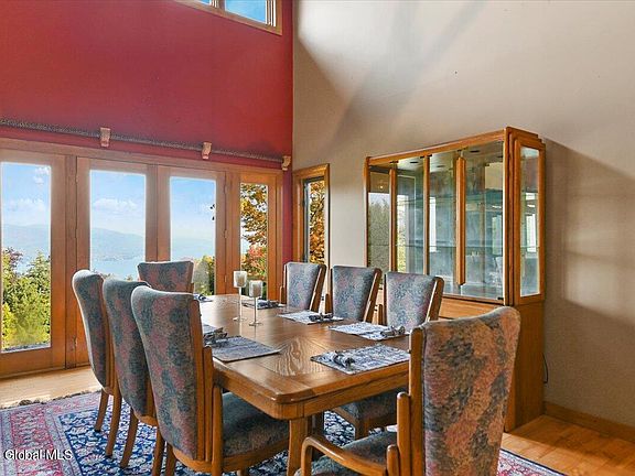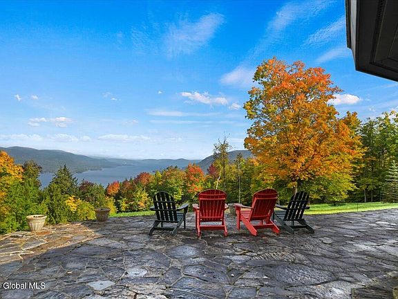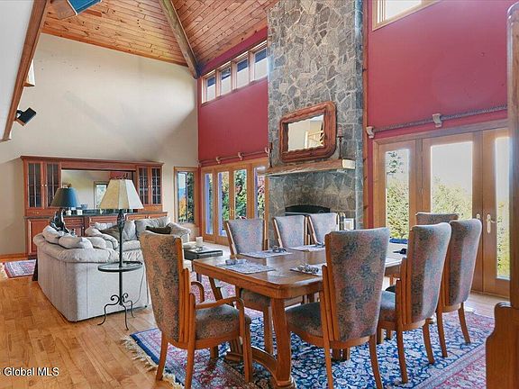 Absolutely stunning views from every step you take on this quintessential mountain property. Custom built 3574 s/f home rests above Huletts Landing boasting open floor plan with soaring ceilings anchored by 2 story stone fireplace. Custom cherry wet bar, cherry hardwood and custom railings. A fully equipped kitchen open to the spacious great room near to a centrally located 1/2 bath for easy access. Large primary main floor bedroom with custom ensuite and oversized walk in closets. On the second floor you'll find 2 bedrooms with custom Jack/Jill bathroom leading to the large den and more. Attached, oversized 2 car garage. On the exterior you'll find custom stone patios, outdoor kitchen/patio, fire pit and private pond. Finally a detached 3 car garage with 1 bd apartment.