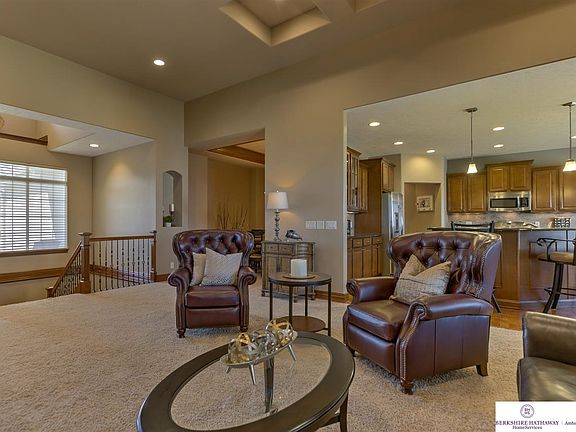 OPEN SUN, 5/1 1-3. Walkout ranch w/ open floor plan & lots of entertaining space. The Eat in kitchen boasts large eat at breakfast bar, lots of counter space, plus access to the covered composite deck overlooking the neighborhood common area & pond. Separate formal dining rm, back office & large pantry. Spacious master w/ door to deck, bath w/ walkin shower. Lower Level features stone Fireplace, large rec rm, wet bar, 2 bdrms & lots of storage. Cement board siding & prof landscaping.
