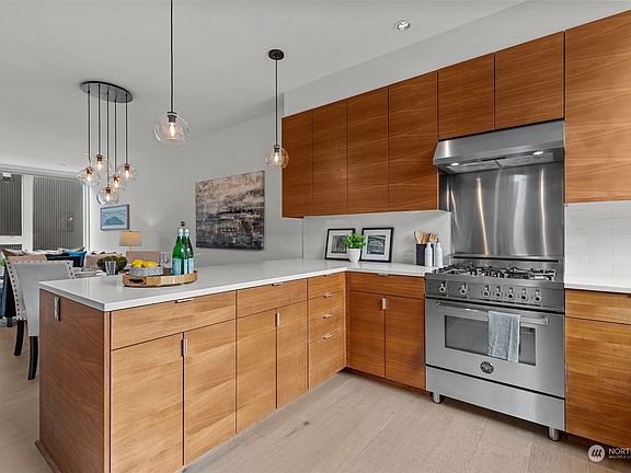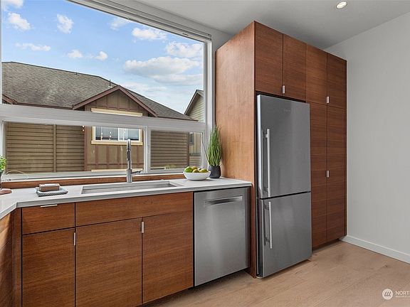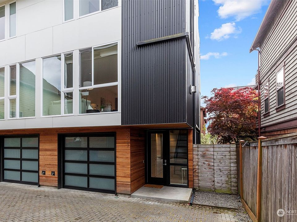 This exceptional & sophisticated modern green-built luxury home is at the heart of Ballard. Large kitchen featuring quartz counters, stainless appliances, & wood cabinets w/tons of built-in storage. Open living/dining rooms that are light & bright w/floor to-ceiling windows, custom gas fireplace & hidden storage. Oak hardwood floors, high ceilings, fresh paint, designer lighting & fixtures, A/C & so much more! Large bedrooms w/ensuite baths & custom California closets, king sized primary w/spa-like 5-piece bath & walk-in closet. 600sf rooftop deck w/water view of Salmon Bay. Attached garage w/storage, fenced back yard w/patio. 2 blocks to Market St, restaurants, shops, transportation, great schools, parks & more. Love where you live!