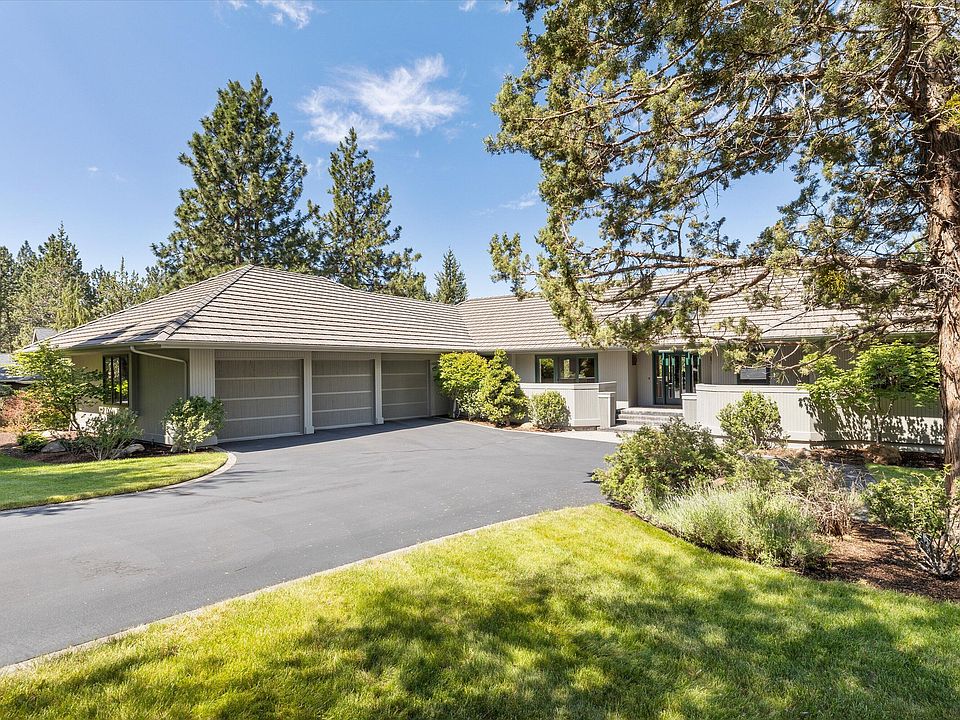 Enveloped by the stunning Three Sisters, entering this single level residence you immediately know you belong. The peaks are visible from almost every room. Extensive quality woodwork throughout including wood wrapped, metal clad windows, solid core doors, custom builtins. Thoughtfully designed open concept floor plan w/ primary suite separation. Granite counters, temperature controlled wine area, large island, coffered ceiling & deck access, this kitchen has space for it all! A great room w/ incredibly mastered vaulted ceiling is ideal for entertaining or sitting by the fire & gazing at the peaks. Primary suite affords two large walk-in closets, marble bathroom, deck access & of course the incredible view. Designated office is complete w/ extensive built-ins. Dining room opens to front patio-the ideal spot for enjoying coffee while watching the sunrise. Three car garage is a car lover's dream complete w/ natural light, outdoor access & flat driveway. Abundant storage.