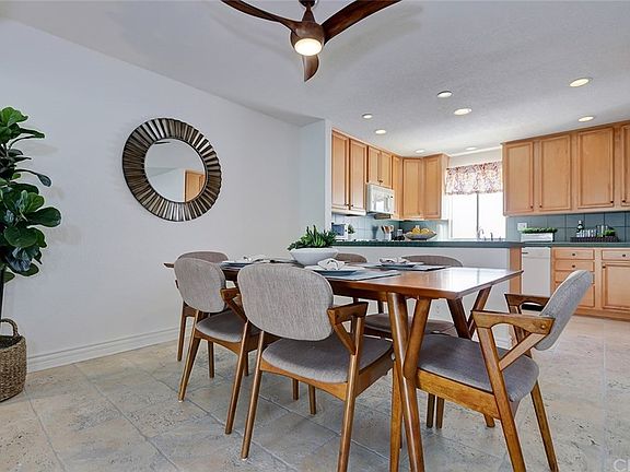 This adorable, updated townhome will surprise you with its high beamed ceilings and open floor plan! Walk into a bright and airy living room with hardwood floors, a fireplace and a private patio perfect for entertaining or enjoying your morning coffee. This home has a large dining space and an updated kitchen featuring a breakfast bar, lots of counter space for cooking and plenty of cabinets for storage. There is a guest bathroom downstairs as well as direct access from a 2 car private garage with laundry area. Upstairs you have a large master bedroom with high ceilings and a unique atrium that brings in beautiful natural light to the top floor. The upstairs bath features 2 separate vanity areas for each bedroom. This home is located near restaurants, shopping and just a few minute drive to the beach! Donât miss out on this charming townhome!