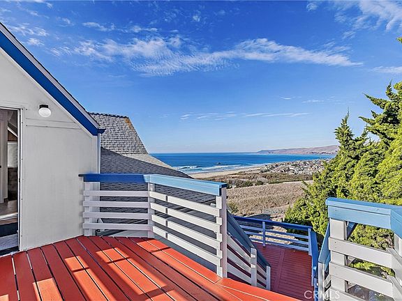 More Than Meets the Eye” applies to this singular residence positioned high above Richard Avenue on a upslope parcel reaching a forested hillside far above the coast. Views stretch from both points to the North of Cayucos. South views stretch beyond Morro Rock, past Morro Bay to Los Osos, Cabrillo Estates and the Irish Hills beyond. Parking is positioned on two paved pads just below the residence. The house rises 3+ stories and captures views over all adjacent structures. An elevator provides easy access from the ground level up. Rooms and their arrangement create an adventure in themselves and can easily be used as multi family or separate units. Tax records show 3 bedrooms, but there are other rooms and unusual spaces. Expansive multiple deck spaces create varied microclimates with hillside or coast orientation and additional outdoor living spaces. Kitchen, dining and bedrooms are easily identified, other rooms await a new owner’s inspiration. Sounds intriguing? This house is unique and creation of a similar structure today would not get far. See it soon!