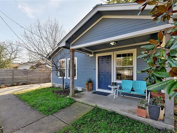 Hip Central East Austin Home. Extensive renovations including Standing Seam Metal Roof, high efficiency fiberglass windows, Spray foam insulation, Hardi-plank cement board siding, 16 Seer HVAC, nest controlled thermostat & surveillance system. Kitchen features solid wood custom cabinets, statue marble counter tops, & stainless steel appliances. Solid Oak Hardwoods and Solid Core pocket doors throughout. Inviting covered front porch and back deck overlooking green space complete the package