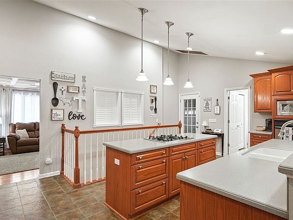 The perfect home for stay-cations and working from home. From the open floor plan with Kitchen and family room to the elegant living room with coffered ceiling and cozy fireplace. Lets head to the finished lower level with wet bar, tv viewing and some exercise. Don't feel like staying inside? The inground saltwater pool will refresh before gathering under the cabana for refreshments and grilling out. Main floor master suite with fireplace, large master bath with double vanity and jetted soaking tub. Two car attached garage plus a 2.5 car detached garage with bonus home office. Definitely room to store all the vehicles and toys. Private backyard is fenced. Details like trex decking, solid surface counters, wood and gas fireplaces, outdoor entertaining, plus Pool has a heater!