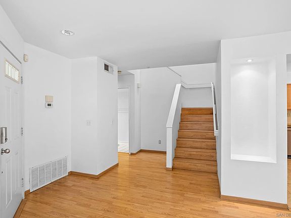 Welcome to 2 story townhouse, located just couple minutes from I-94/I-125 in very small gated quiet community. Unique opportunity to make this place to your aspirations. Inviting separate kitchen with counter spaces & plenty of wood cabinets. All appliances stay: gas stove/oven, fridge, microwave, dishwasher. Month old water heater. Strong higher quality "Trane" HVAC. Vaulted ceiling living room with cozy fireplace. Recess lights in living room & kitchen. No popcorn ceilings. ½ bath on a ground level. 2 car attached garage. Staircase with skylight. Second level offered huge master with large closet, vaulted ceiling, dual sinks bath. Second bedroom upstairs with a closet. Extra bedroom upstairs for office/nursery. Laundry closet upstairs with full size washer/dryer. Tranquil huge backyard with full fence, mature trees & enough room for a pool. 2 pets up to 50 lbs allowed. VA approved complex. Water/sewer/trash paid. Seller is motivated!