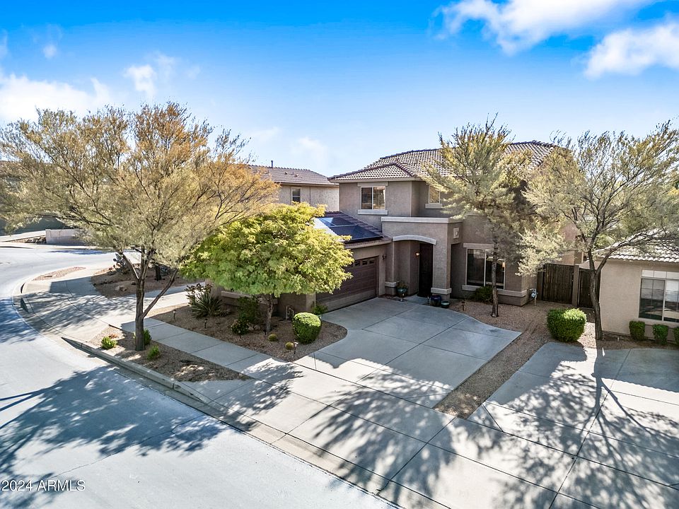 Nestled in the highly desirable Tramonto community, this stunning three-bedroom, two-and-a-half-bathroom home is a true gem in North Phoenix. With low maintenance desert landscaping in the front, a spacious two-car garage, and an extended driveway for extra parking, this home offers convenience and curb appeal. Inside, you still find NEW CARPET (2025) and luxury vinyl (2023) flooring, the kitchen boasts upgraded granite countertops, SS appliances, and tall upper cabinets that provide ample storage and a touch of elegance. The backyard is perfect for relaxation or entertaining under the Arizona sky. The Tramonto community offers an impressive array of amenities, including two sparkling pools, volleyball and basketball courts, playgrounds, and scenic running and biking trails that wind through green belts. Don't miss the chance to experience the best of North Phoenix living in this must-see home!