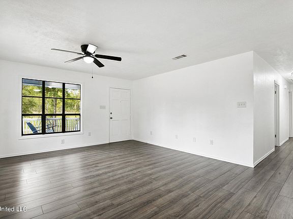 SUPER CUTE MINI FARM on 3.27 acres in Kiln, MS - House has been updated & remodeled thru out with new vinyl plank flooring, soft close kitchen cabinets, granite countertops, bathrooms & paint (even the exterior masonite siding has fresh new pretty blue paint). There is already a dog kennel out back with running water and a small corral in place for your other animals. Nice long porch in the front with a comfy swing. Ready for a family & animals to move right in !